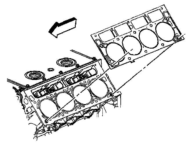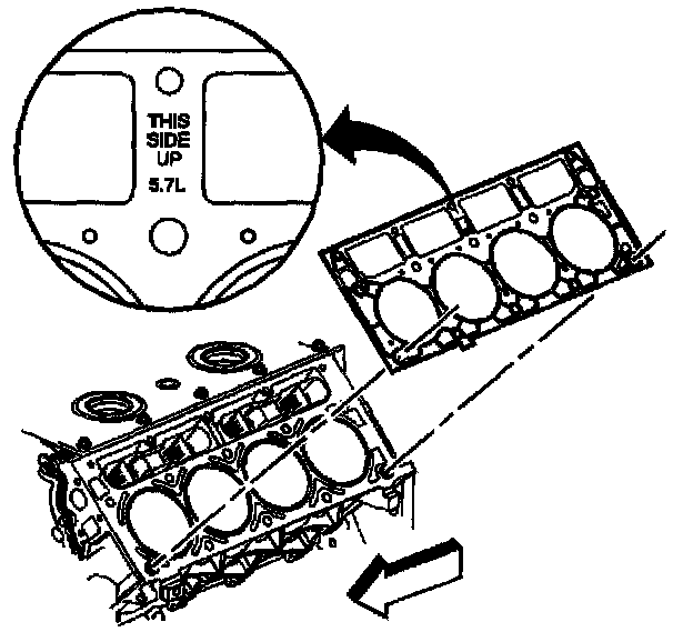 ^ The cylinder head gaskets must be installed in the proper direction and position.