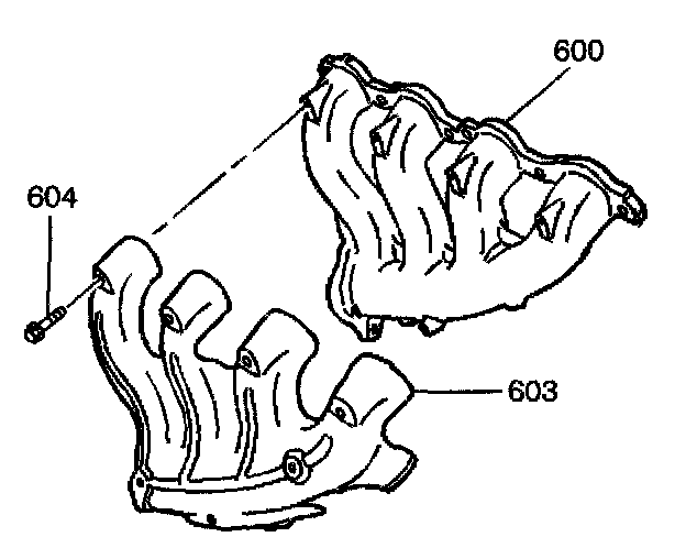 5. Install the heat shield (603) and bolts (604).