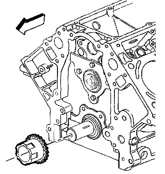 3. Install the crankshaft sprocket onto the front of the crankshaft. Align the crankshaft key with the crankshaft sprocket keyway.