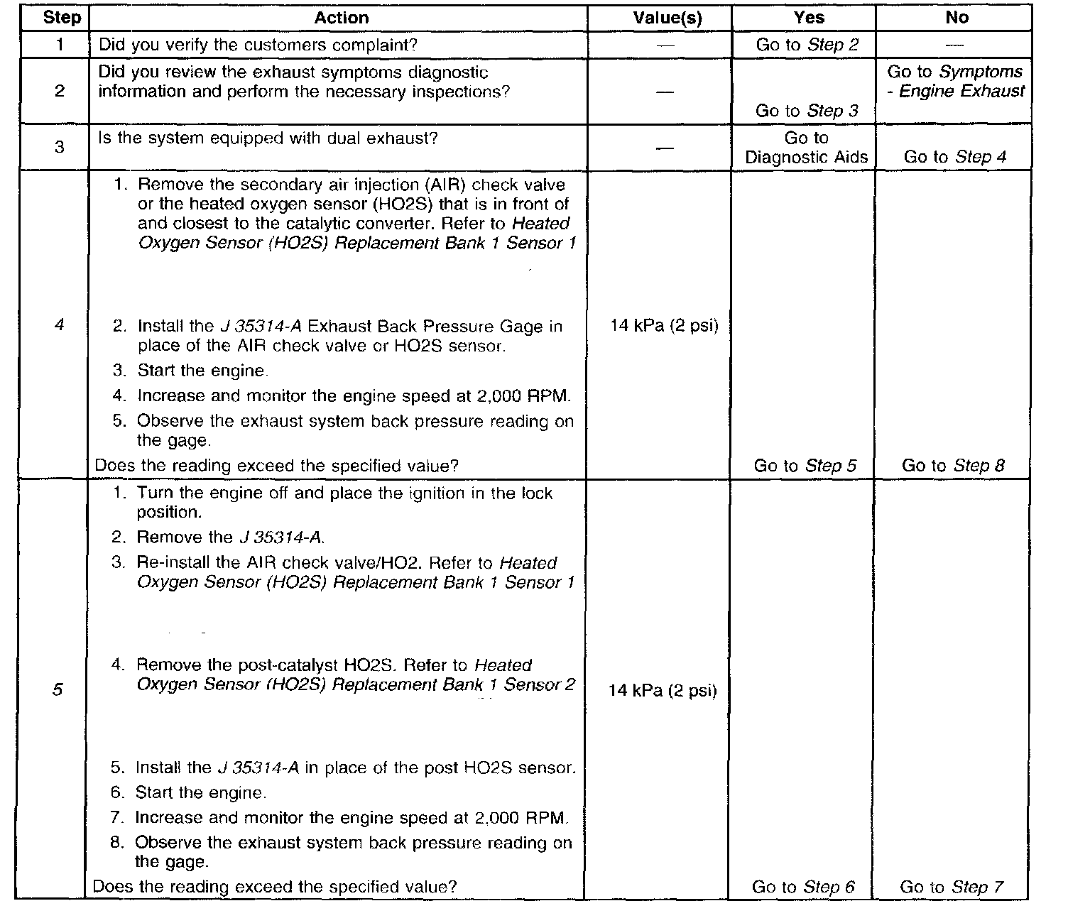 8. Confirming that the condition has been fixed is essential. If the symptom still exists and the vehicle has a dual exhaust system, proceed to Step 2 and repeat diagnostic procedure on the opposite exhaust pipe.
