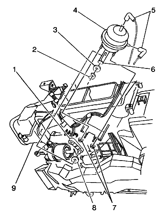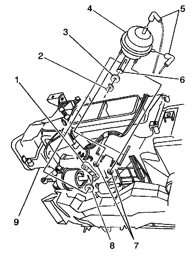 2. Disconnect the vacuum lines (5) from the actuator (4).
