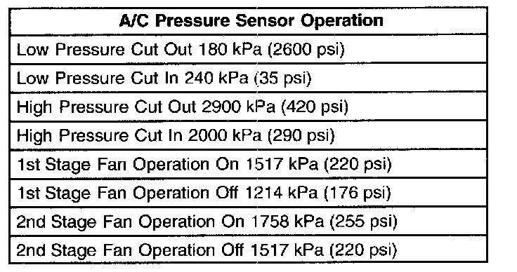- A/C Pressure is between 180 kPa (26 psi) and 2 900 kPa (420 psi).