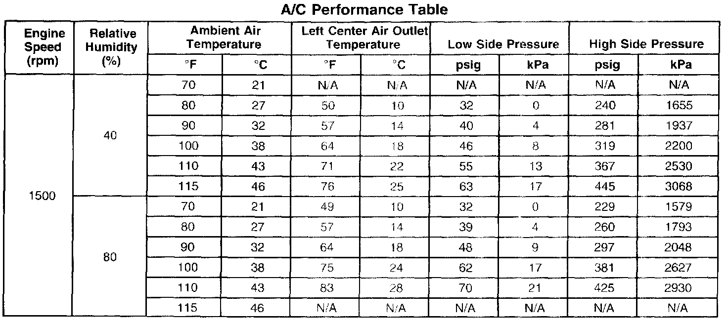 A/C Performance Table: