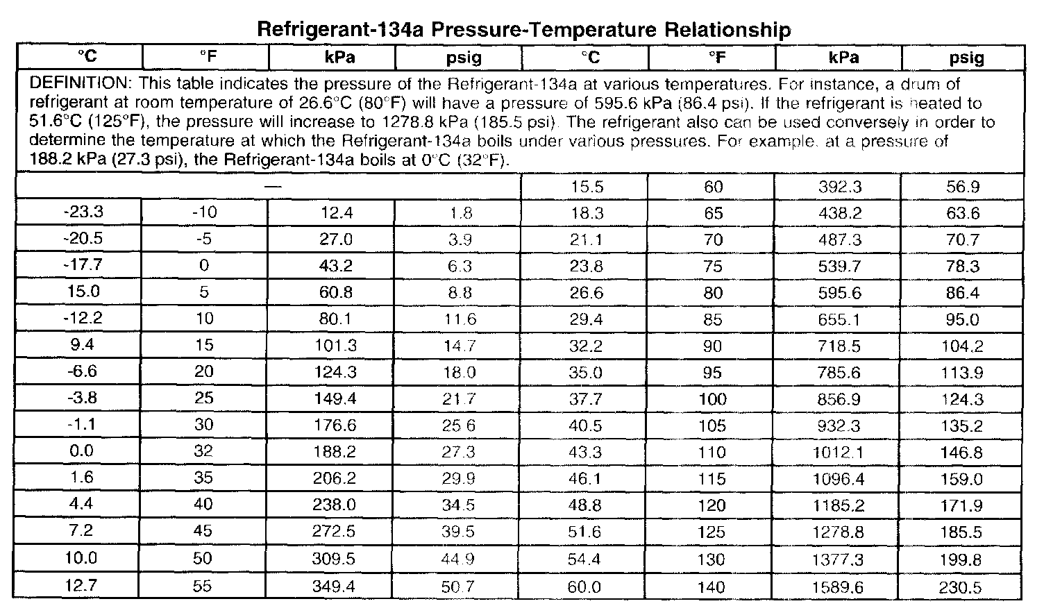Refrigerant-134A Pressure-Temperature Relationship: