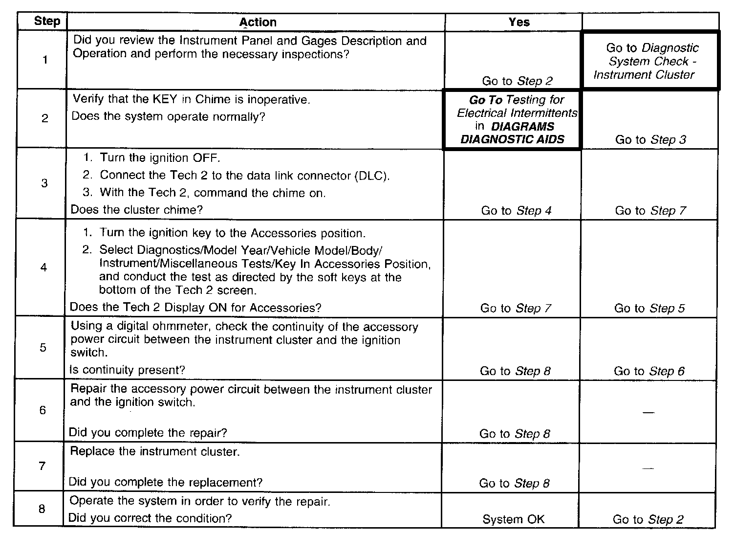 Key Reminder Chime Inoperative