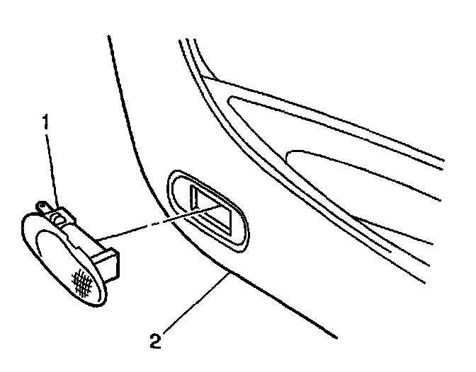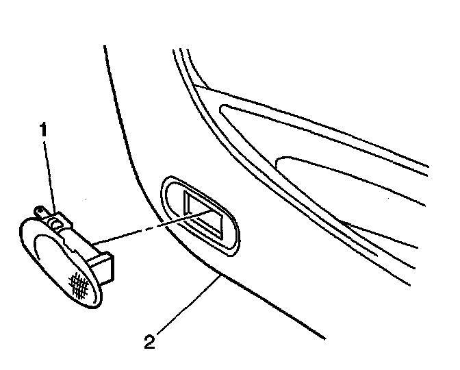 2. Install the courtesy lamp (1) to the trim panel (2) by pressing firmly until the retaining tabs are fully engaged.