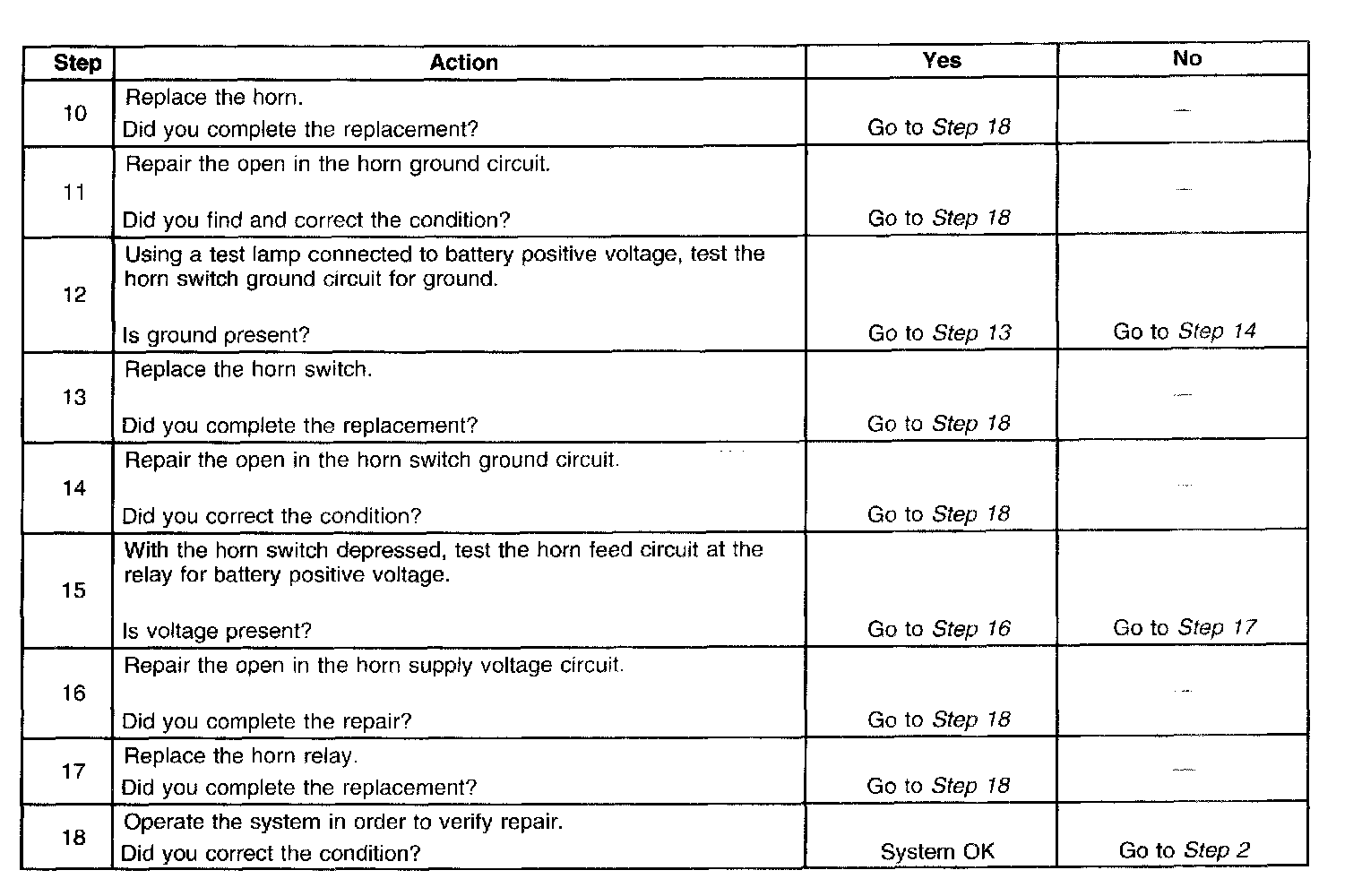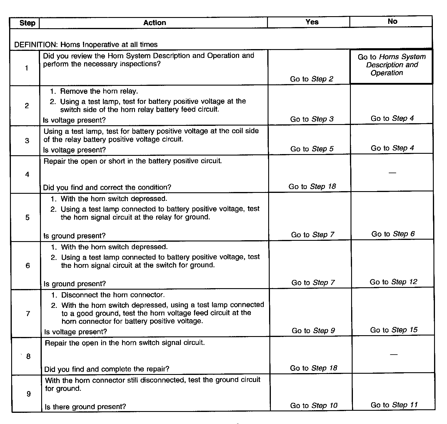 Horns Inoperative