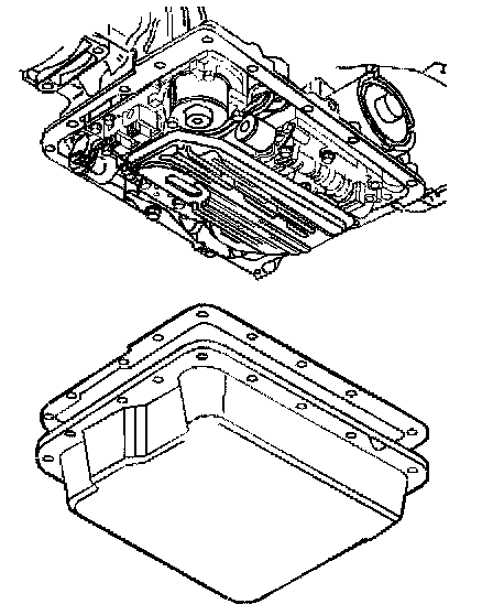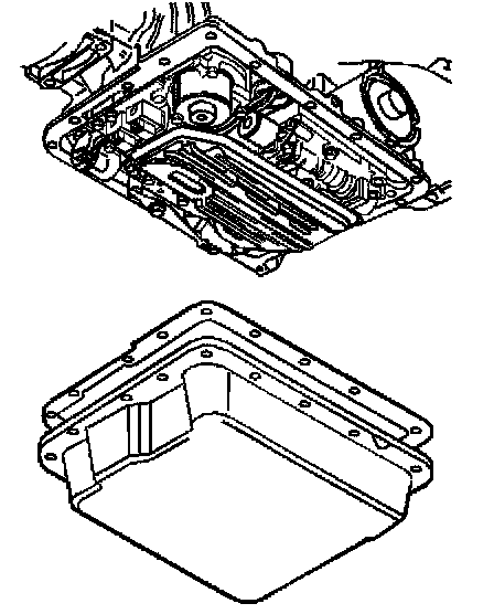 13. Clean the transmission case and the oil pan gasket surfaces with solvent, and air dry. You must remove all traces of the old gasket material.