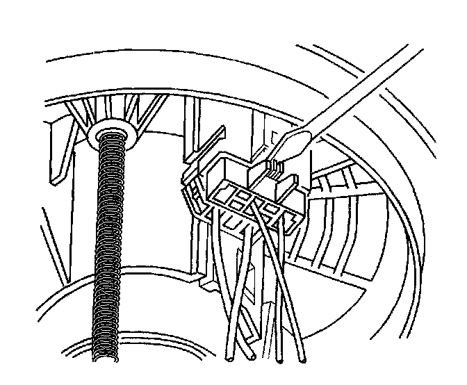 4. Press in the tang retaining the fuel pump connector on the fuel pump and filter assembly, then remove the connector.
