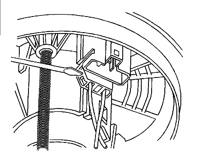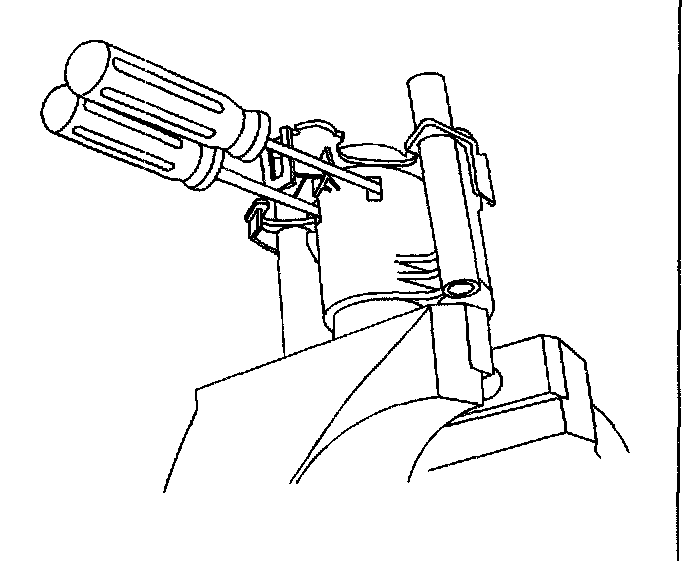 7. Pry open both tangs securing the fuel outlet connector to the bottom of the motor and filter assembly, then remove the fuel outlet pipe from the motor and filter assembly.