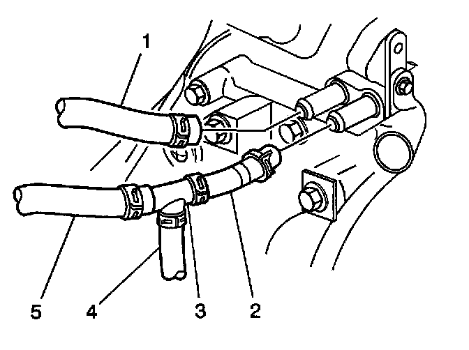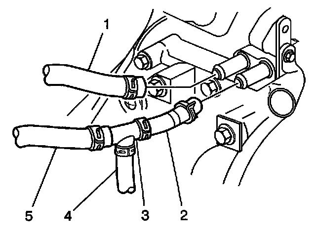 5. Install the heater hoses (5,2) to the tee.