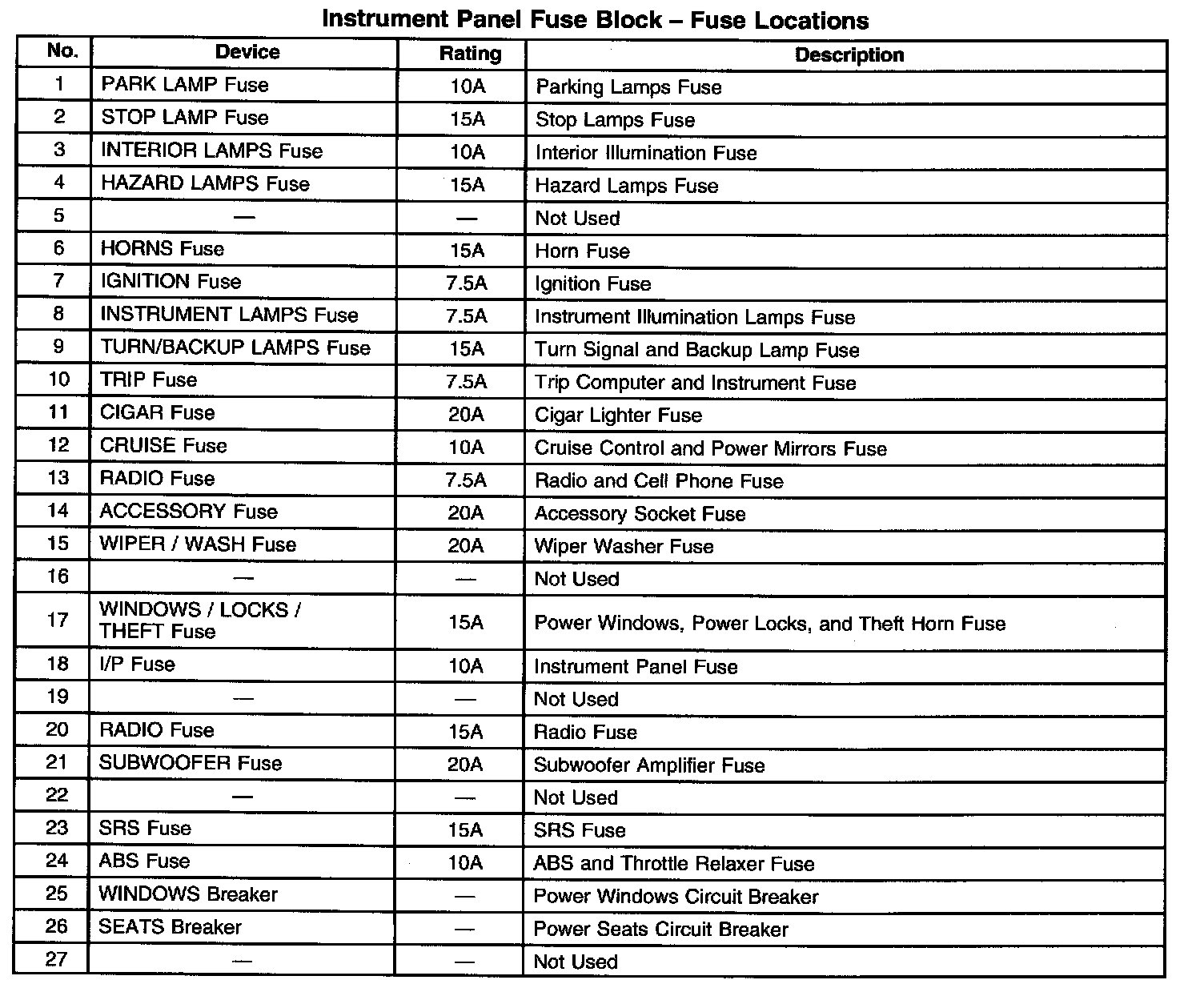 Instrument Panel Fuse Block