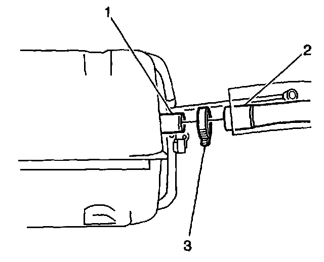 2. Loosen the fuel tank filler neck throat to fuel filler neck flexible hose hose-clamp (3).