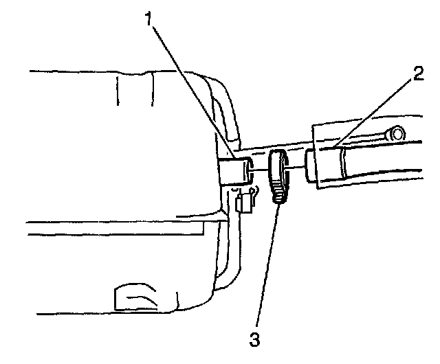 1. Install the filler neck hose (2) on the fuel tank filler neck throat (1)