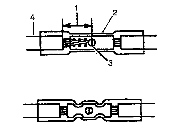 - Strip approximately 7.5 mm (5/16 in) of insulation from each wire to be spliced (1).