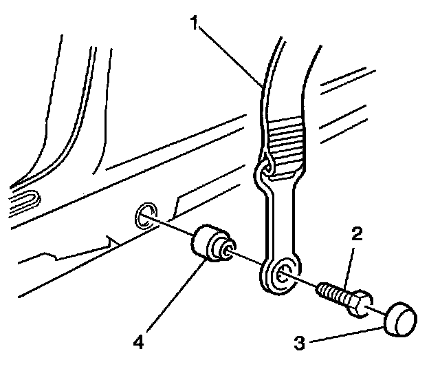 2. Remove the front seat belt lower anchor bolt (2) and seat belt spacer (4).