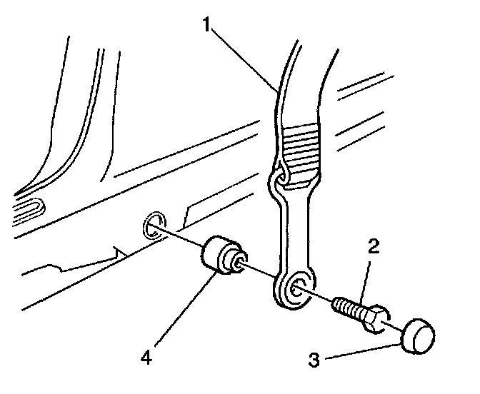8. Install the front seat belt lower anchor bolt (2) and seat belt spacer (4).