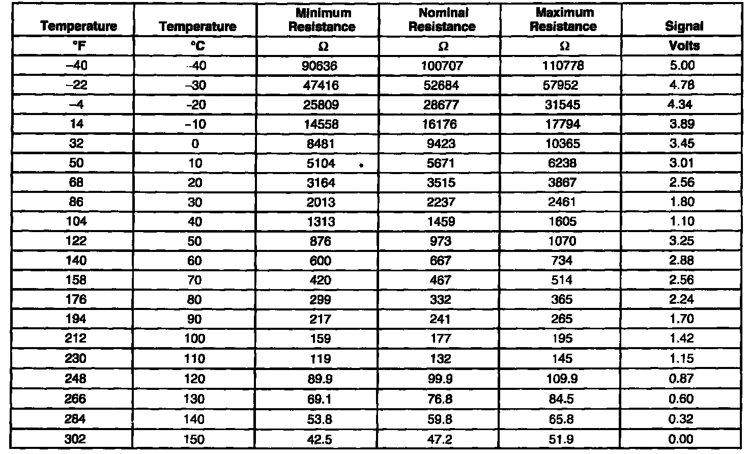 Transmission Fluid Temperature (TFT) Sensor Specifications: