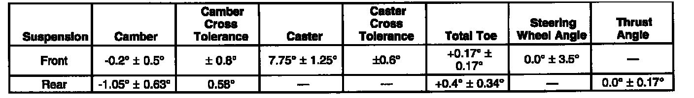 Wheel Alignment Specifications