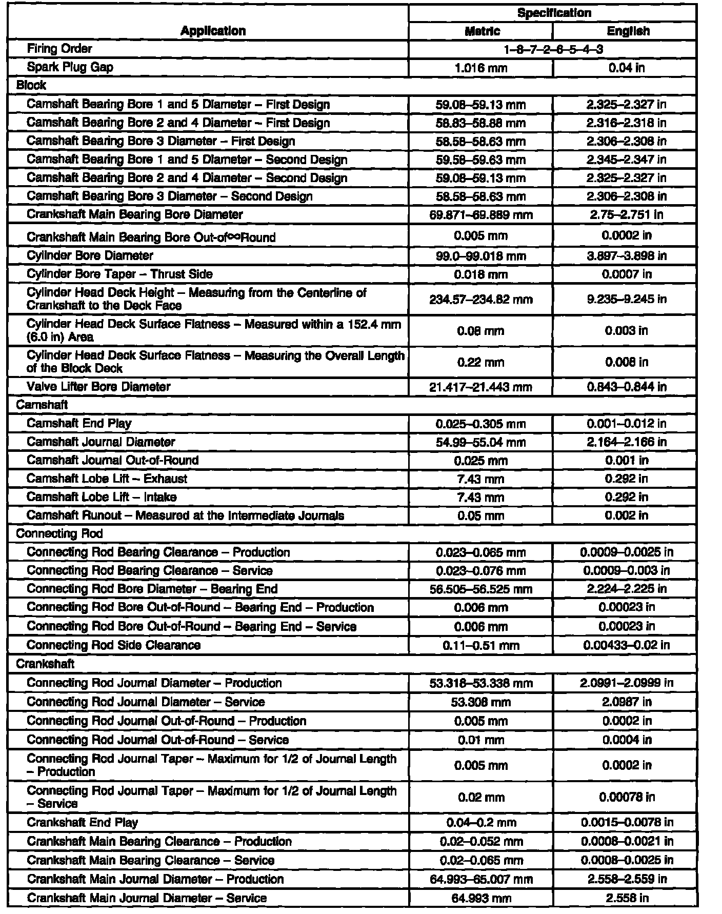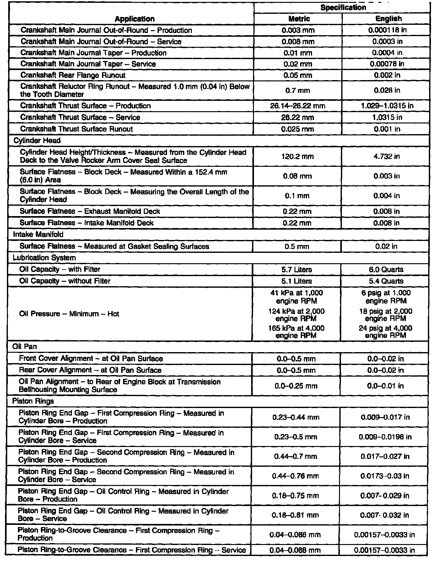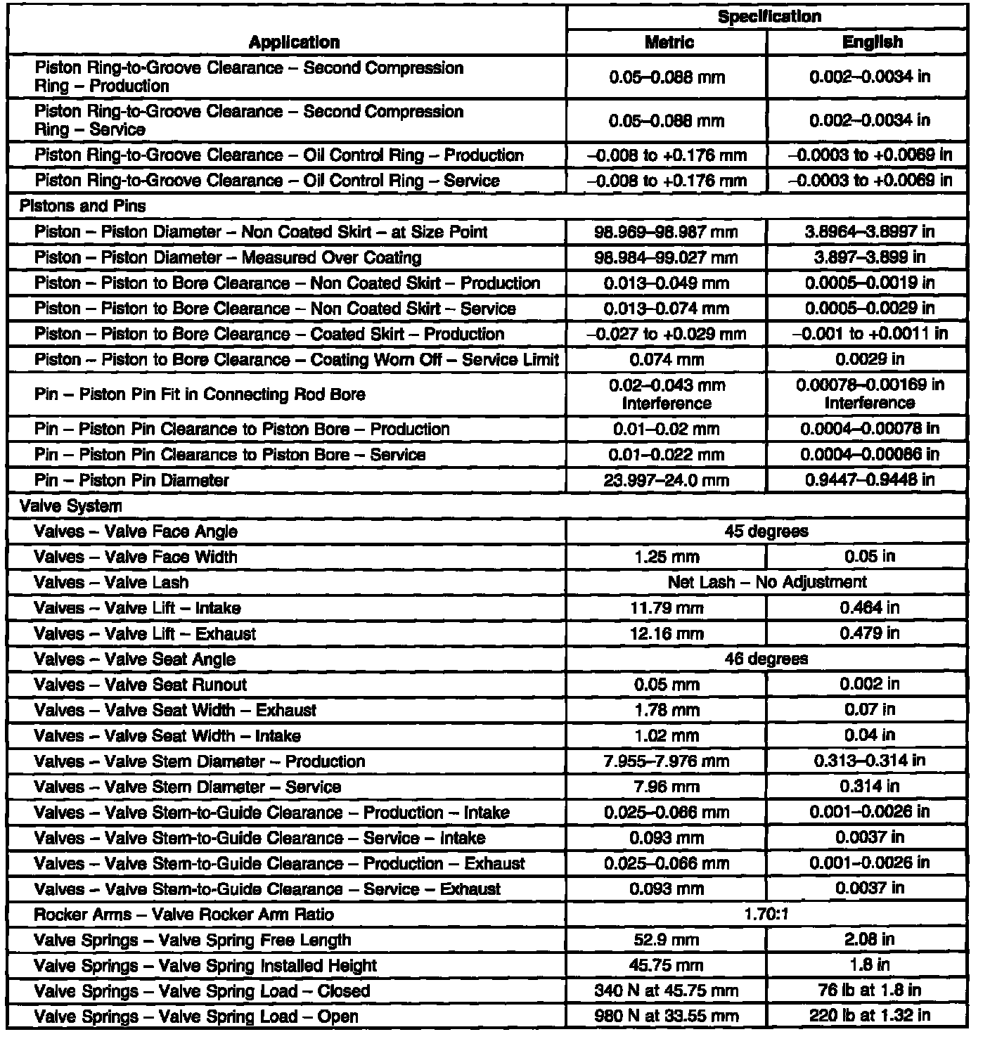 Engine Mechanical Specifications