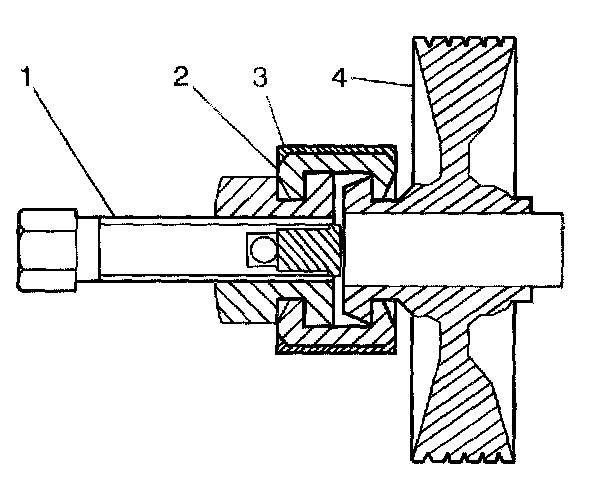 3. Position the forcing screw against the pulley shaft Align the rotation axis of the screw with the rotation axis of the pulley shaft