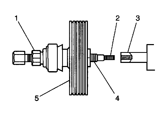6. Use 90 Nm (66 ft. lbs.) of torque or less on the forcing screw in order to remove the pulley. If the pulley requires more torque, replace the pump and the pulley.