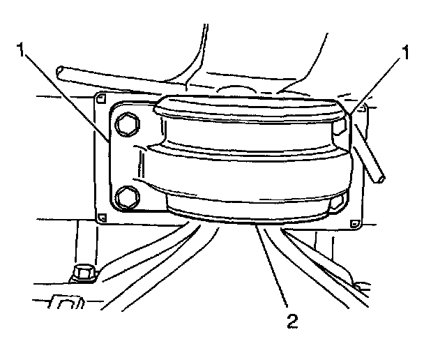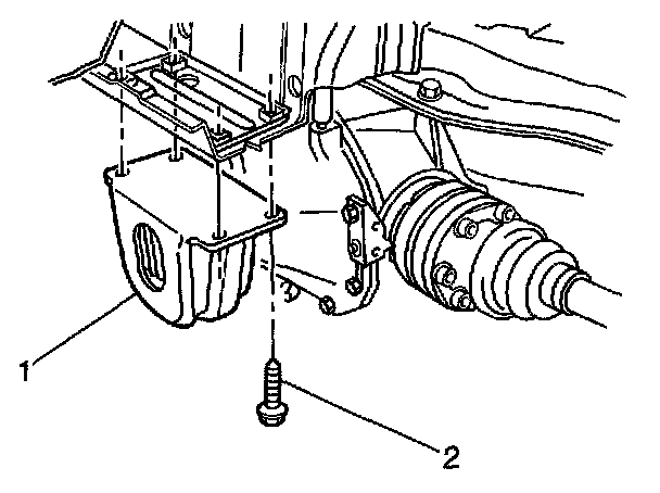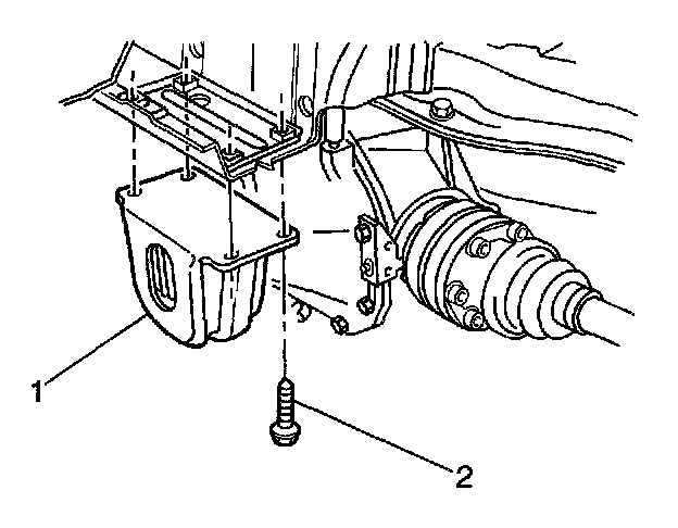 2. Use paint or a scribe in order to mark the outline (1) of the differential carrier assembly mount (2) on the body.