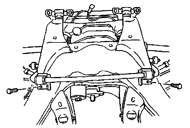8. Remove the bolts that retain the stabilizer shaft insulator brackets to the rear suspension support.