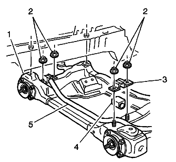 2. Remove the nuts (2) that retain the insulator bracket (3) to the front frame (1).