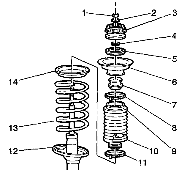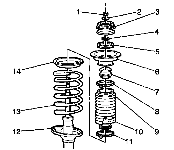 1. Remove the strut assembly from the vehicle. Refer to Strut Assembly Replacement.