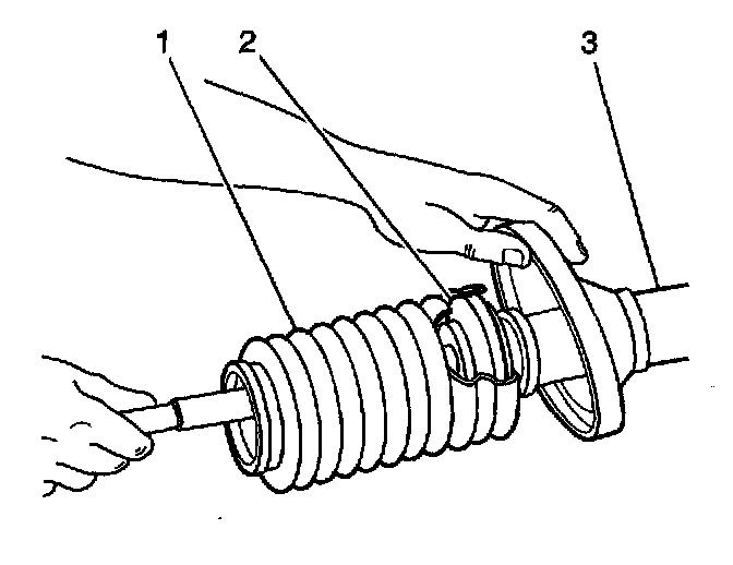 4. Ensure the filter (2) remains seated inside the boot portion of the strut dust shield.