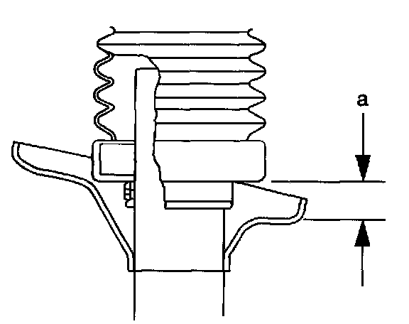 5. Position the strut dust shield on the strut housing tube. Specification The distance (a) between the bottom of the strut dust shield and the bottom of the lower spring seat is 30 mm to 35 mm.