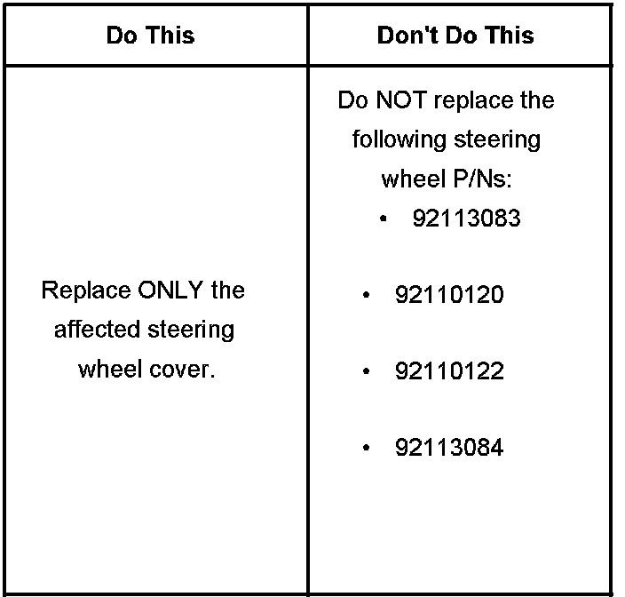 When a steering wheel spoke cover should need replacement, only replace the affected steering wheel cover. It is NOT necessary to replace the complete steering wheel for this condition.