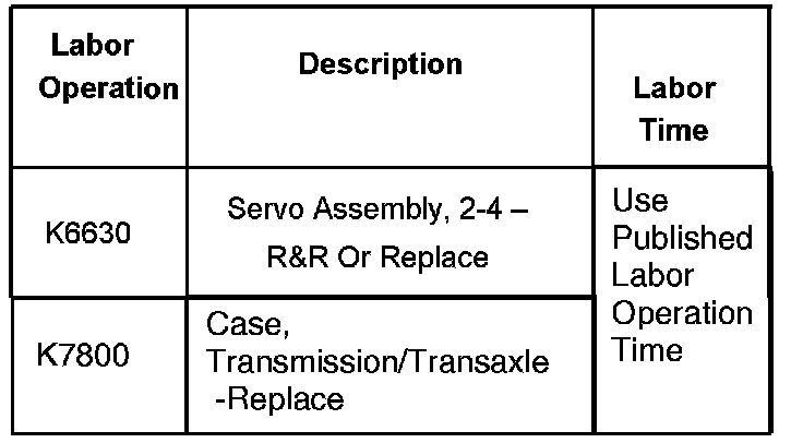 This condition normally occurs at low mileage, usually under 1,600 km (1,000 mi), and investigation may show that the servo cover is loose or that the transmission case is cracked or broken at the servo bore.