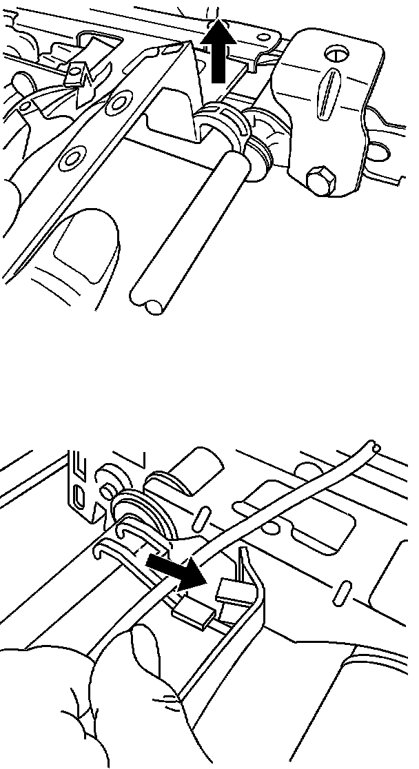 7. On later vehicles with the cable tray-style wiring harness (built after March 2004), unclip the cable tray from the track by lifting the front clips. Pull the cable tray forward to disengage the rear clips.