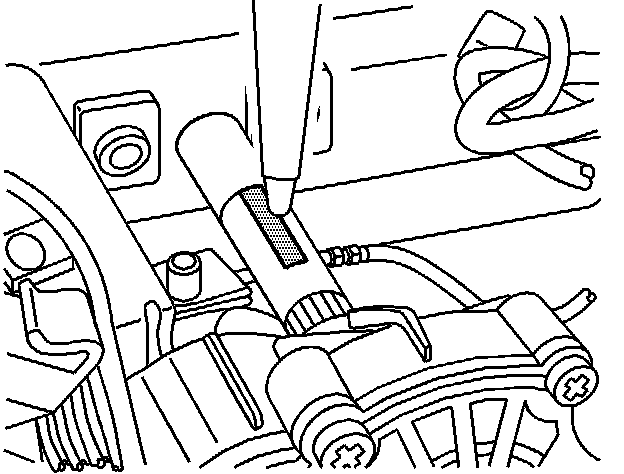 12. Apply Permatex(R) 68040, GM P/N 12377901, or equivalent, to the groove until half-filled and work into the joint under the plastic spacer.