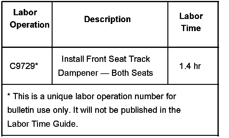 To smooth the forward and rearward operation of the seat, install a seat track dampener to both front seats using the procedure listed below.