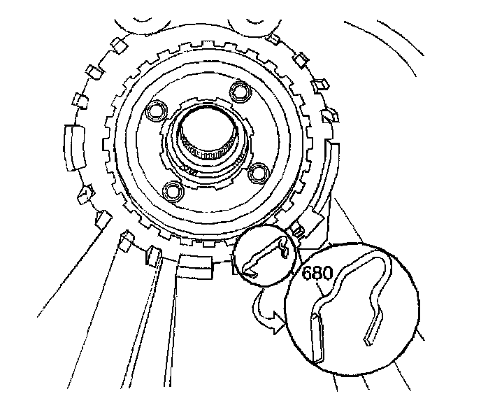 3. Install the low and reverse clutch support retainer spring (680) into the case.