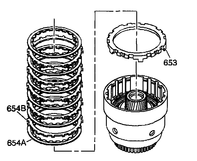 ^ The first steel plate (65413) has the same spline configuration as the 3rd and 4th clutch apply plate (653).