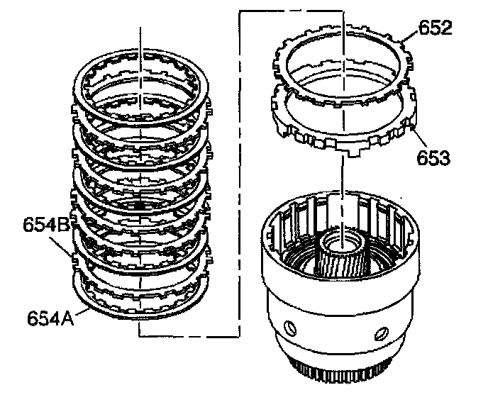 Important: 3rd and 4th clutch steel plate (652) is thinner than the other steel plates (654B)