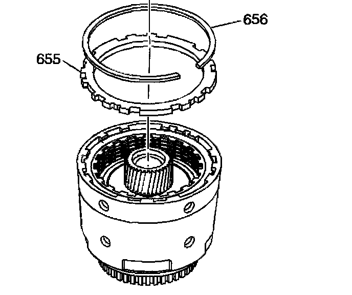 7. Install the 3rd and 4th clutch backing plate retainer ring (656).