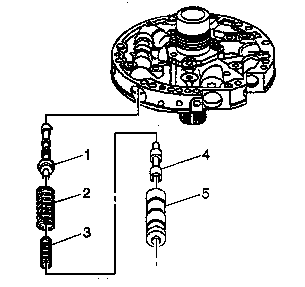 6. Remove the pressure regulator isolator spring (3) and the pressure regulator valve spring (2).