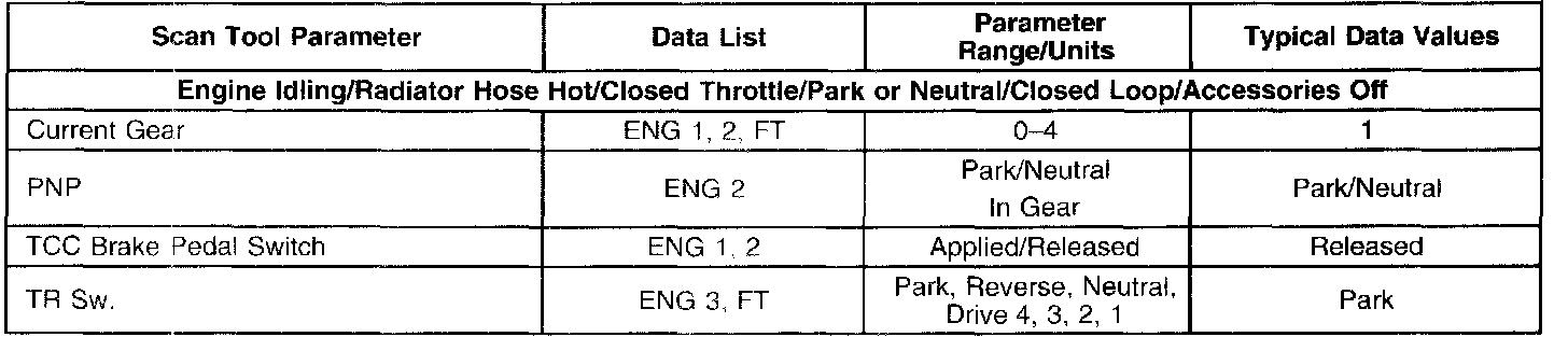 Only the parameters listed below are for use in diagnosis. If all values are within the typical range described below, refer to Symptoms - Automatic Transmission Shift Lock Control for diagnosis.Symptom Related Diagnostic Procedures