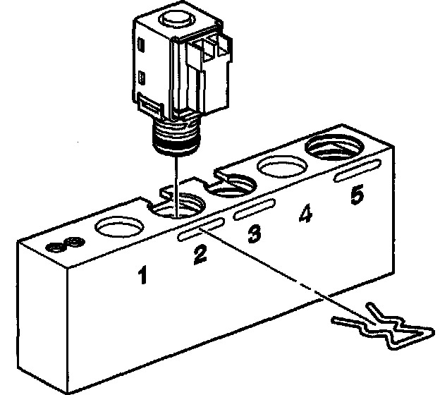 1. Remove the shift solenoid valve from the control valve body or the torque converter clutch (TCC) solenoid valve from the transmission case.