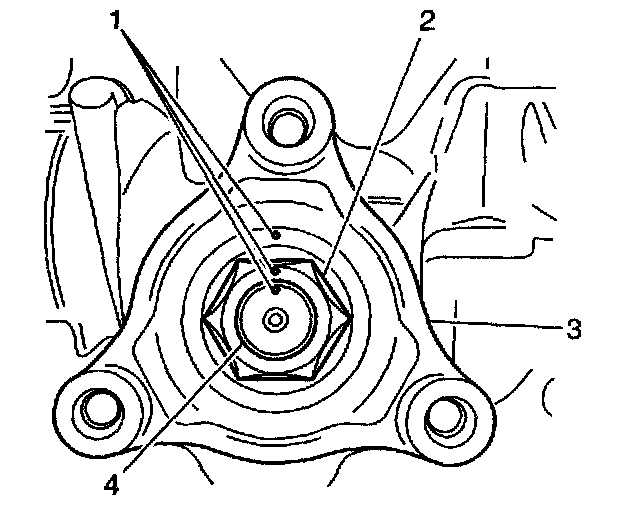 ^ Using J 45059, tighten the nut to a position no more than 5 degrees past the punch marks.