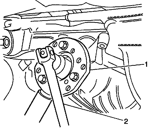 7. Install pinion flange holding tool CH-46865-1 (1) on the pinion flange.