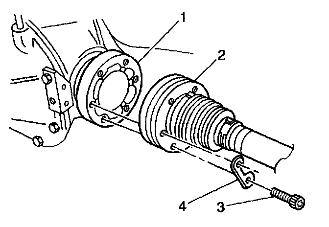 3. Install the outer constant velocity joint mount bolts (1).