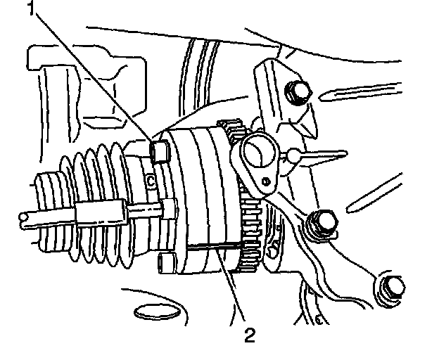 5. Remove the bolts and retaining plates (2) from the outer constant velocity joint