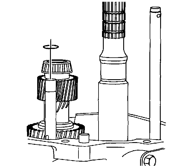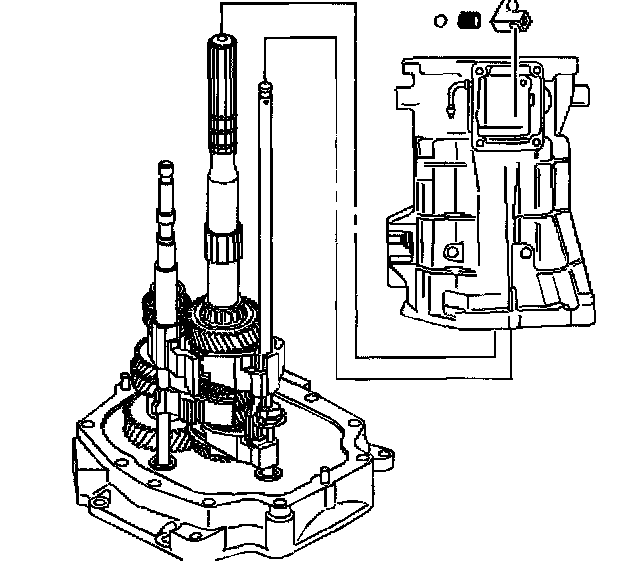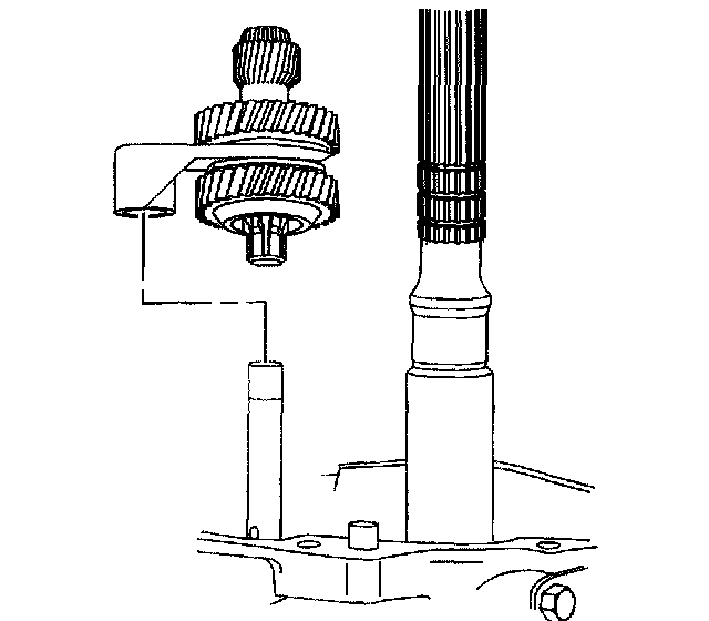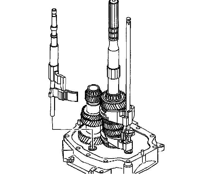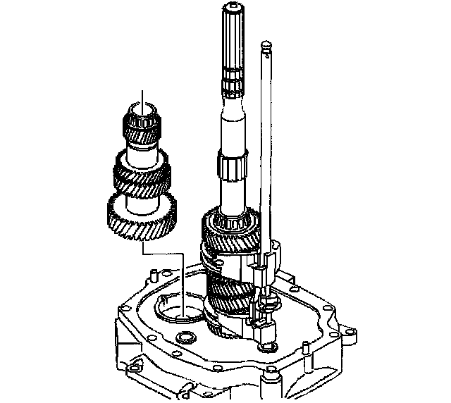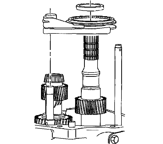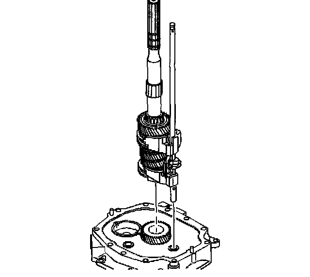 2. Install the countershaft extension assembly and the 5th/6th shift fork. The splines of the countershaft extension must engage the splines of the countershaft.