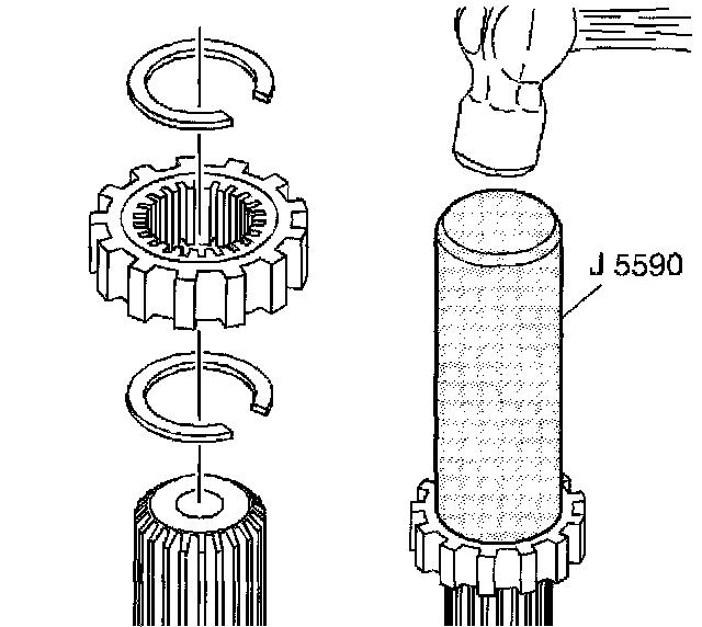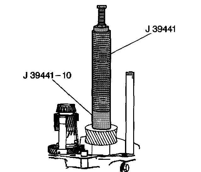 Install the 5th/6th speed driven gear using the J 39441 and the J 3944 1-10. The smaller outside diameter (OD) of the gear faces down.